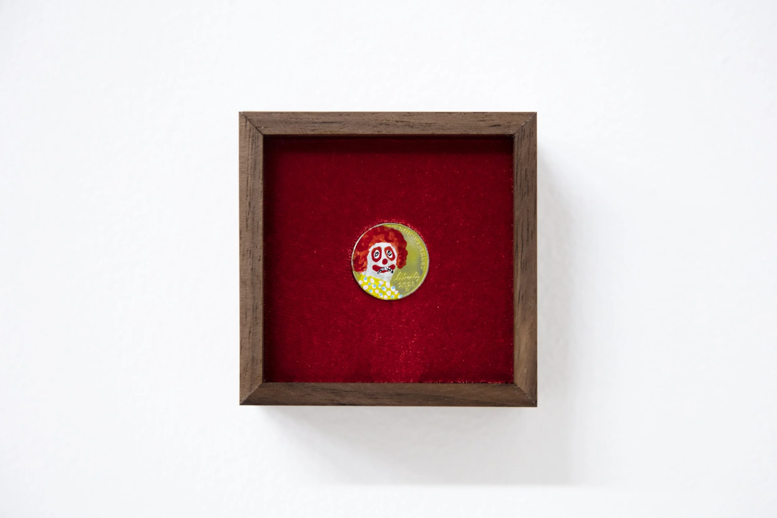 Acrylic ink on USD Nickel in Artist's frame (walnut, velvet)